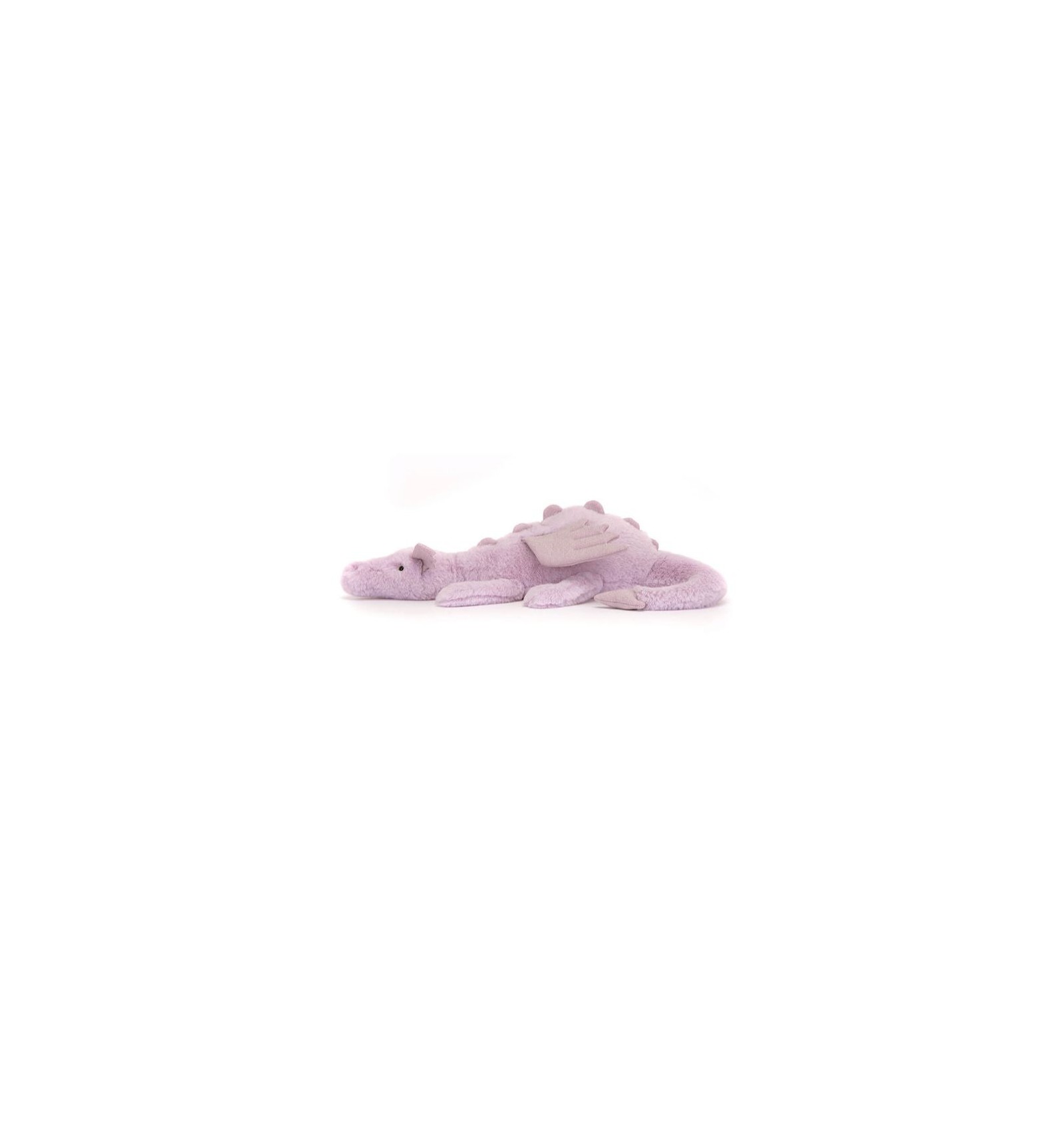 Uroczy smok, w kolorze lawendowym z brokatowymi skrzydłami z utęsknieniem czeka na swoją rodzinę. Nieustraszony, chętnie będzie towarzyszył swojemu panu lub pani we wszystkich przygodach, a jego urocza mordka rozświetli każdy, nawet najbardziej ponury dzień. Posiada liczne zalety:
