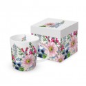 Porcelanowy kubek z pięknym, kwiatowym motywem. Kubek wykonany jest z wysokiej jakości porcelany, ma dobrze wyprofilowane, duże uszko. Kubek opakowany jest w ładne, prezentowe pudełko.